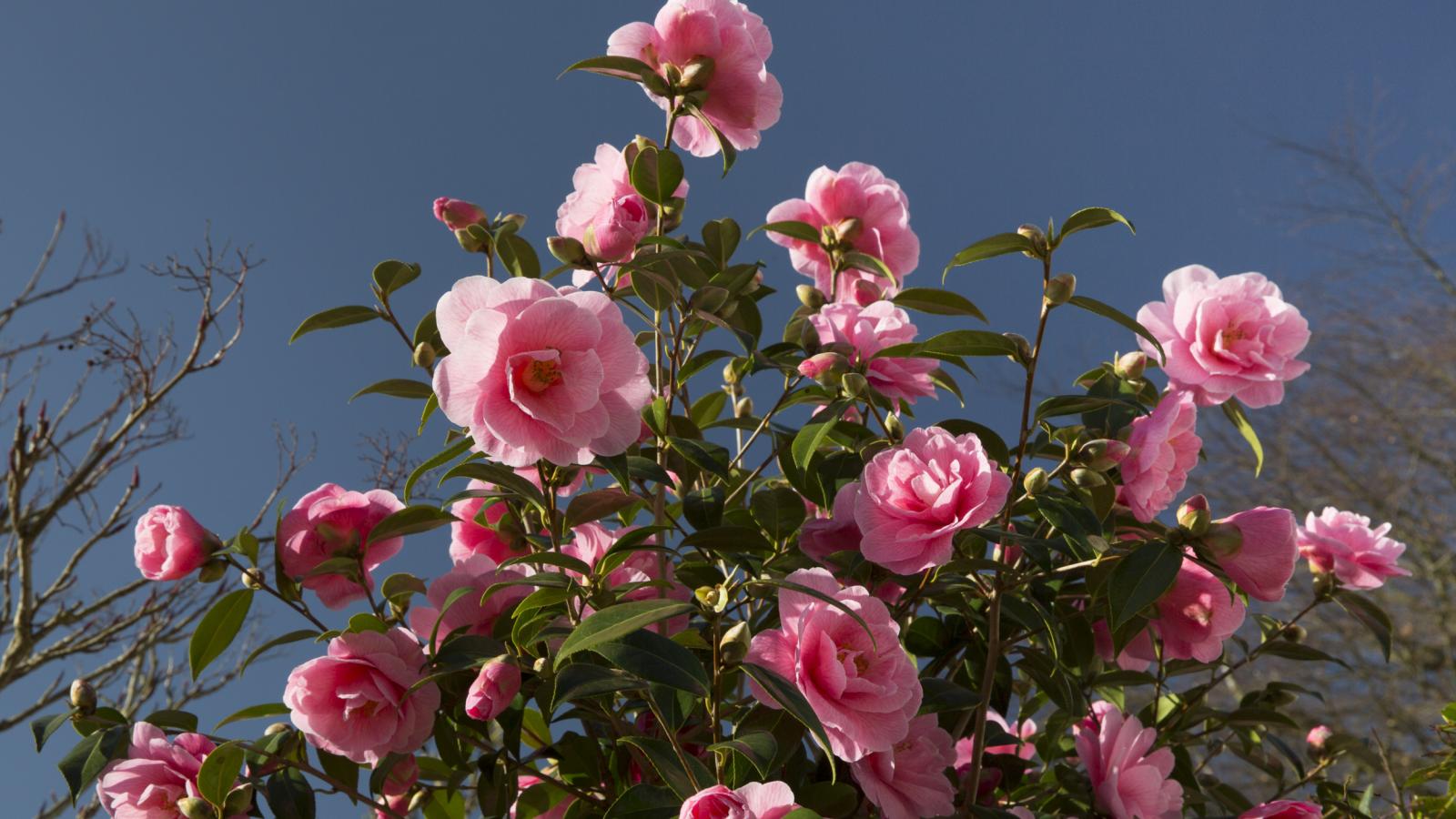 Обои Красивый розовый куст цветов камелия