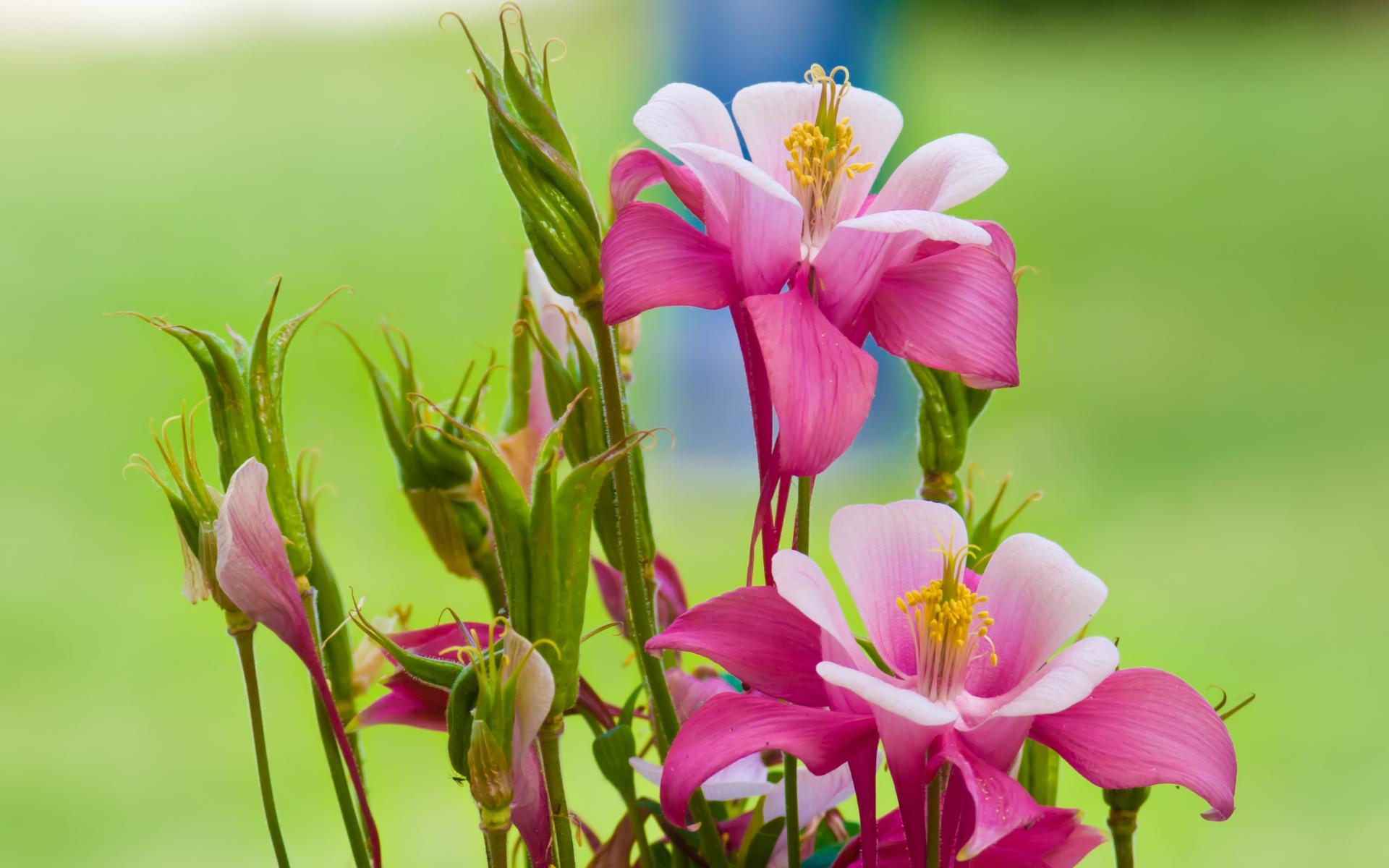 Обои Розовые цветы водосбор на зеленом фоне