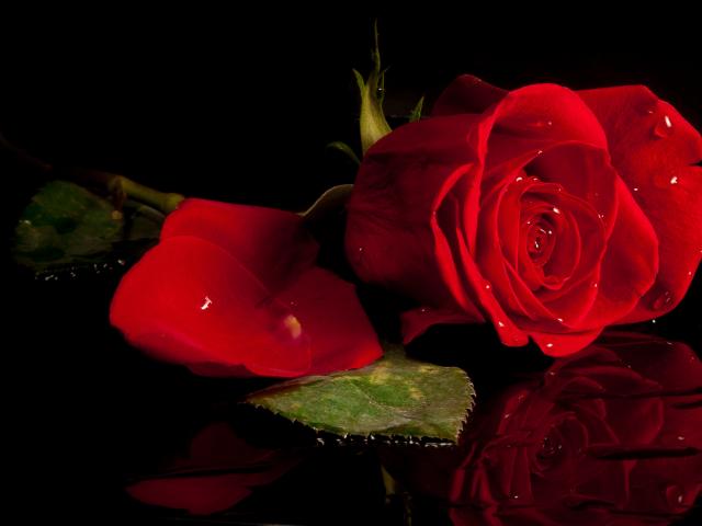 Обои Красивая красная роза отражается в воде