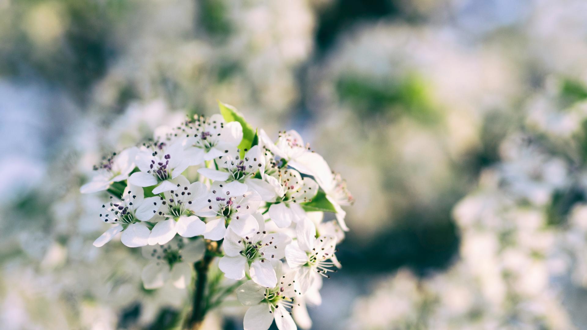 Обои Нежные белые цветы на весеннем дереве