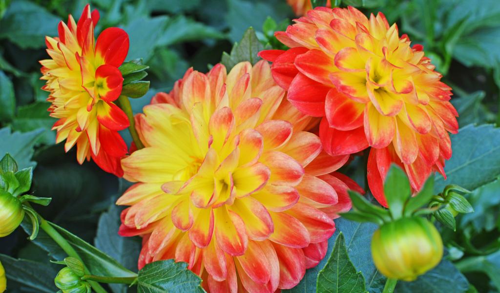 Обои Три красивых оранжевых георгины