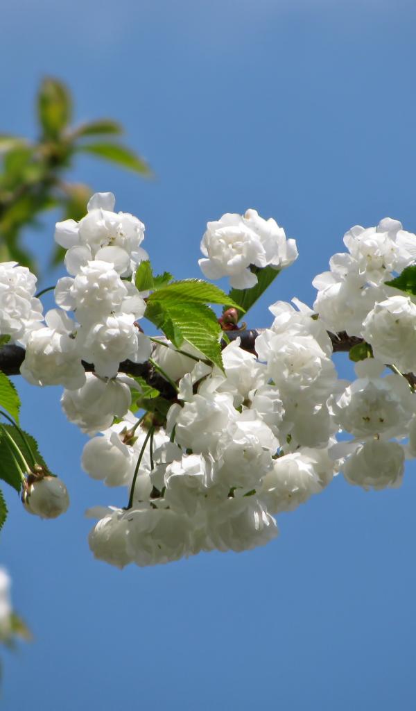Обои Цветущая белыми цветами ветка черешни