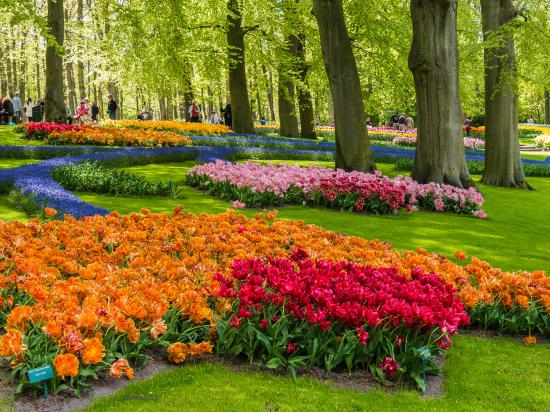 Обои Красивые разноцветные тюльпаны в ботаническом саду