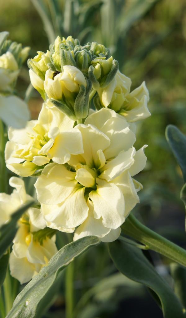Обои Красивый желтый цветок левкой с бутонами крупным планом