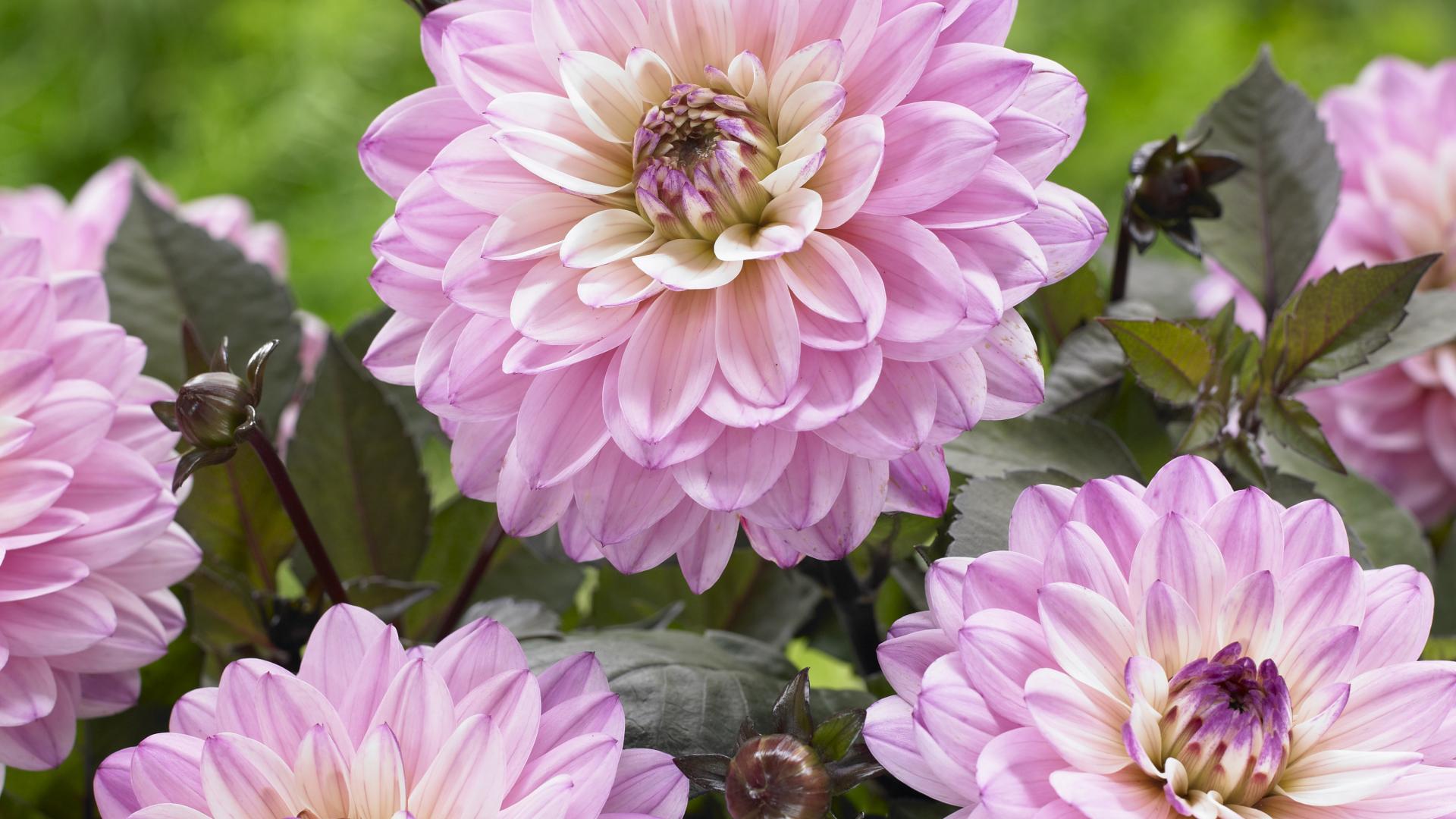 Обои Красивые розовые георгины крупным планом