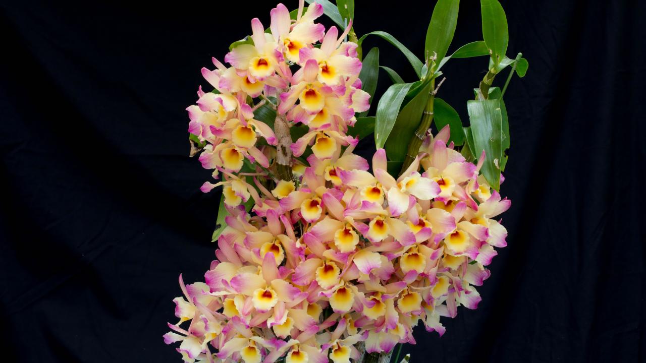 Обои Красивые нежные орхидеи крупным планом на черном фоне