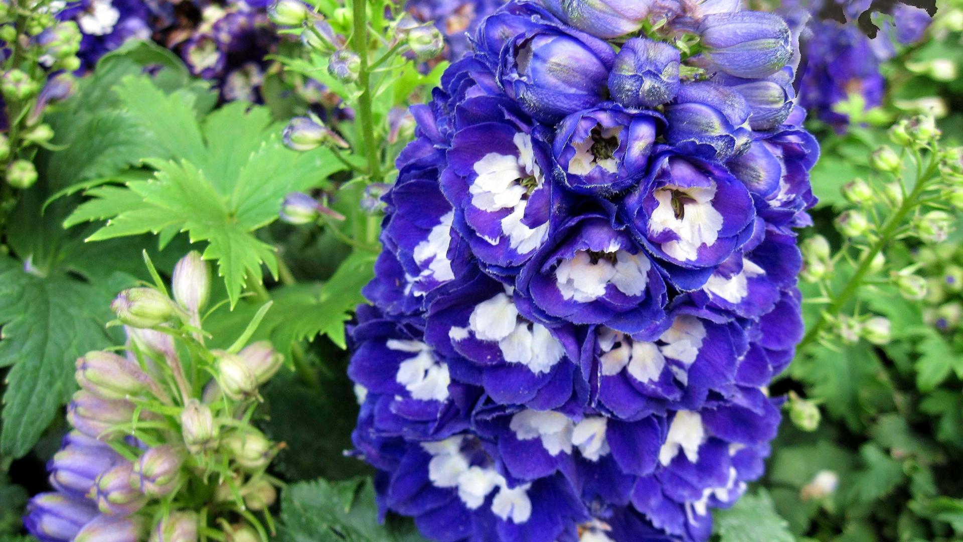 Обои Красивый синий цветок дельфиниум крупным планом