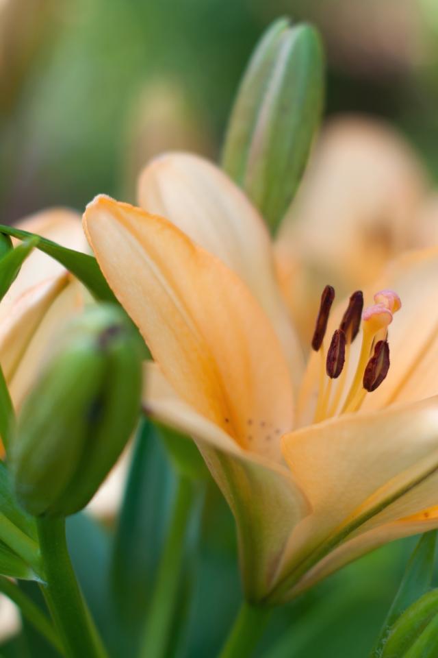 Обои Нежные лилии с бутонами крупным планом
