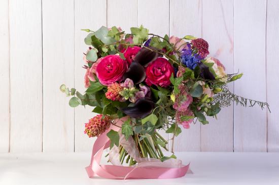 Обои Праздничный букет с розовыми лентами на столе