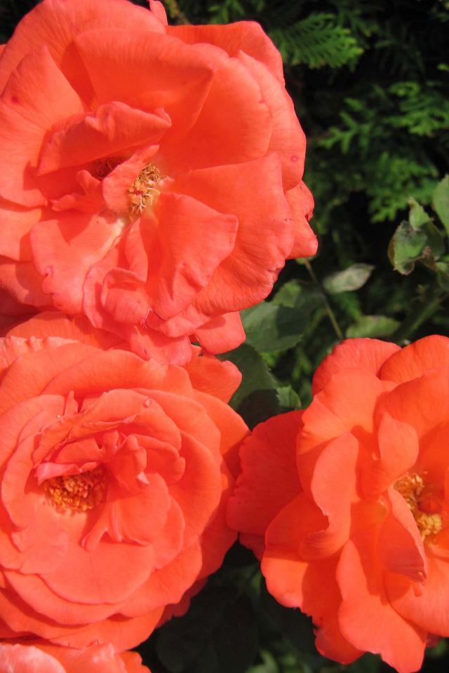 Обои Три оранжевые садовые розы крупным планом