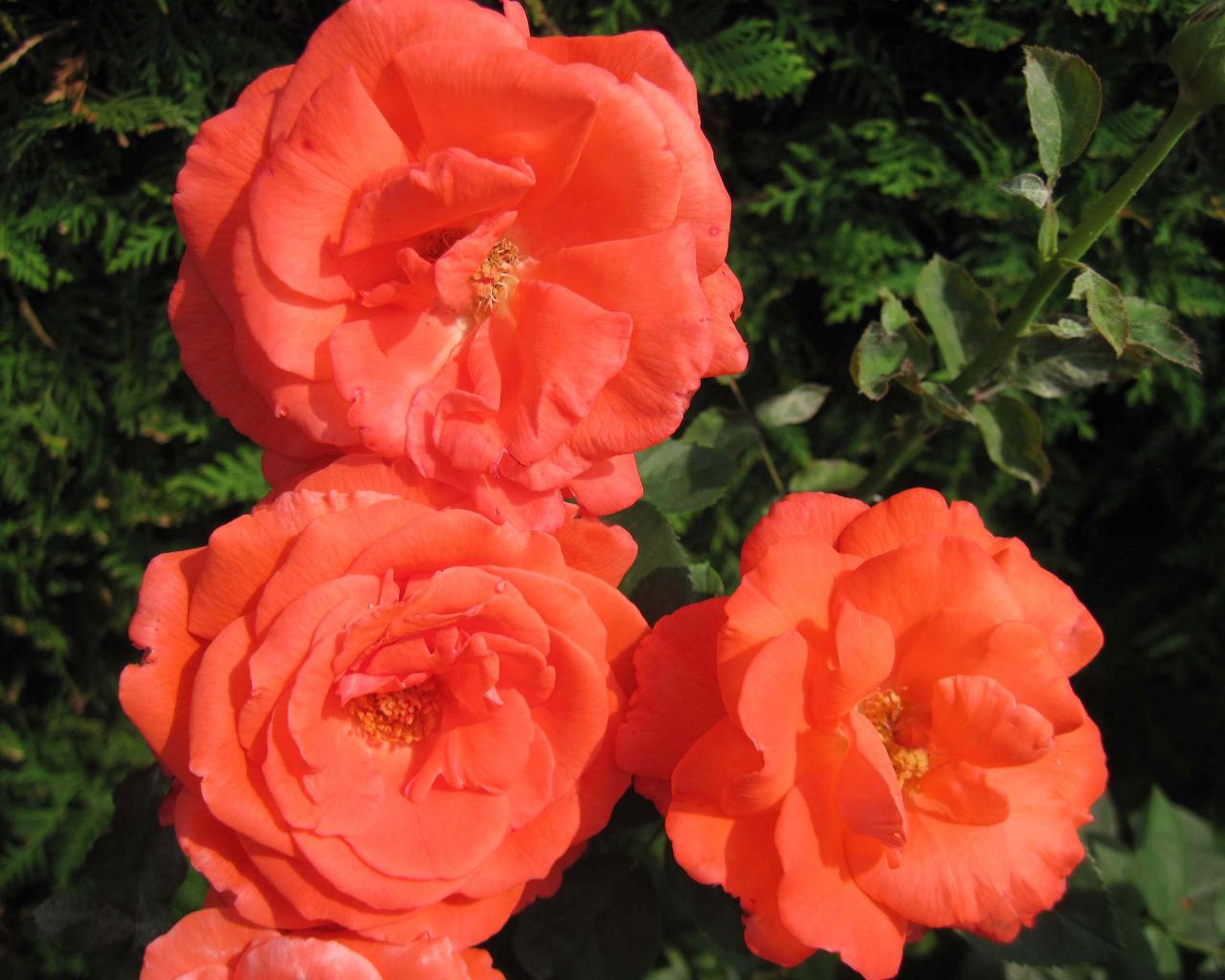Обои Три оранжевые садовые розы крупным планом