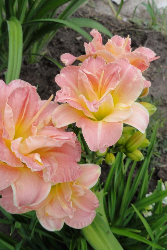 Обои Красивые оранжевые лилии с бутонами на клумбе