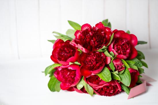 Обои Красивый большой букет бордовых пионов