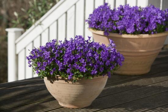 Обои Фиолетовые цветы колокольчики в цветочном горшке