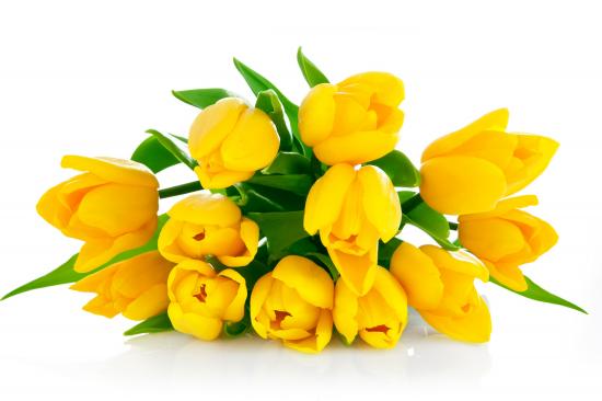 Обои Букет желтых тюльпанов на белом фоне