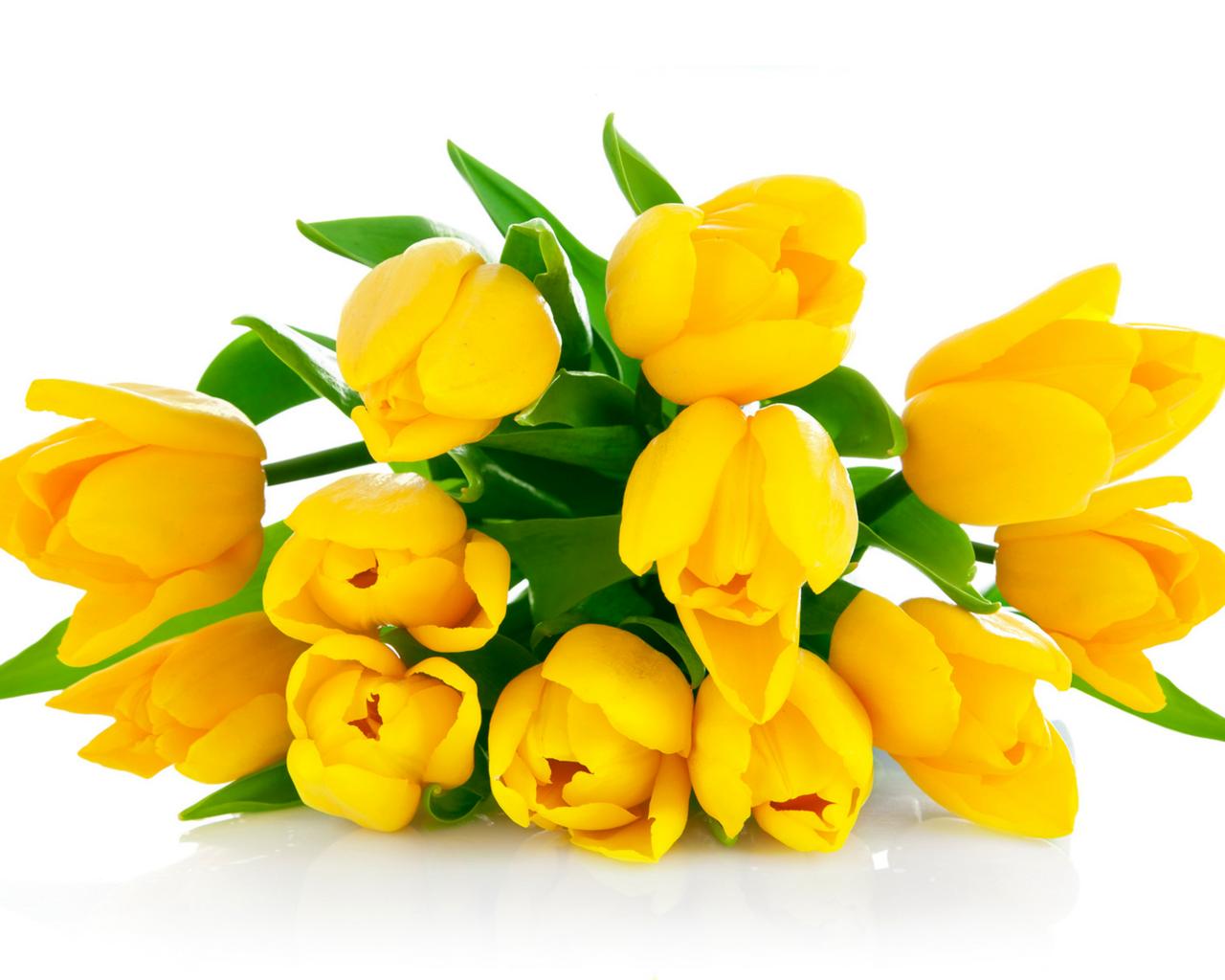 Обои Букет желтых тюльпанов на белом фоне