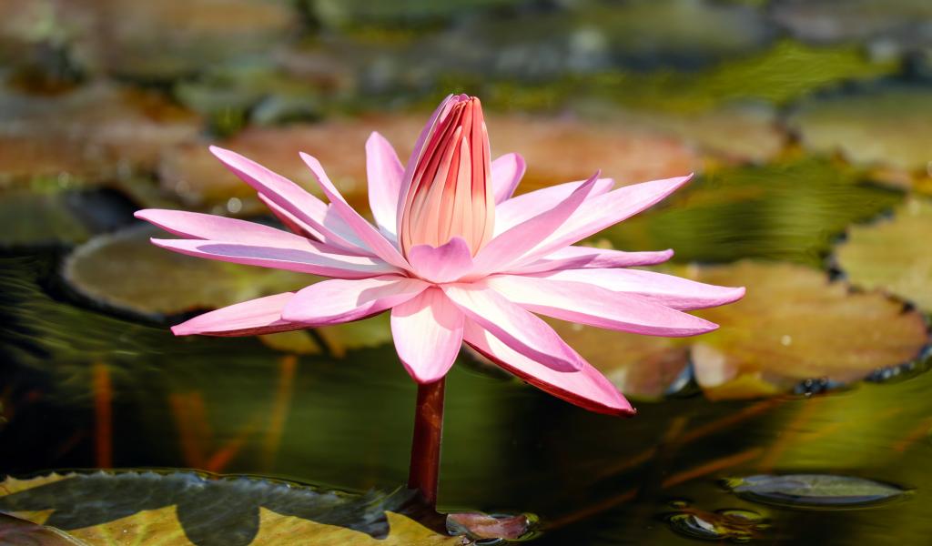 Обои Красивая розовая водяная лилия в пруду
