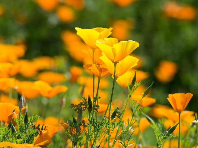 Обои Красивые желтые летние цветы эшшольция калифорнийская
