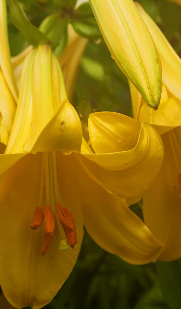 Обои Нежные желтые лилии крупным планом
