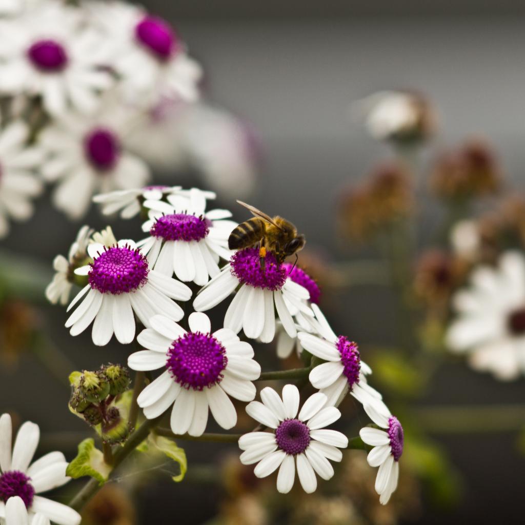 Обои Ромашки с белыми лепестками и сиреневой серединкой