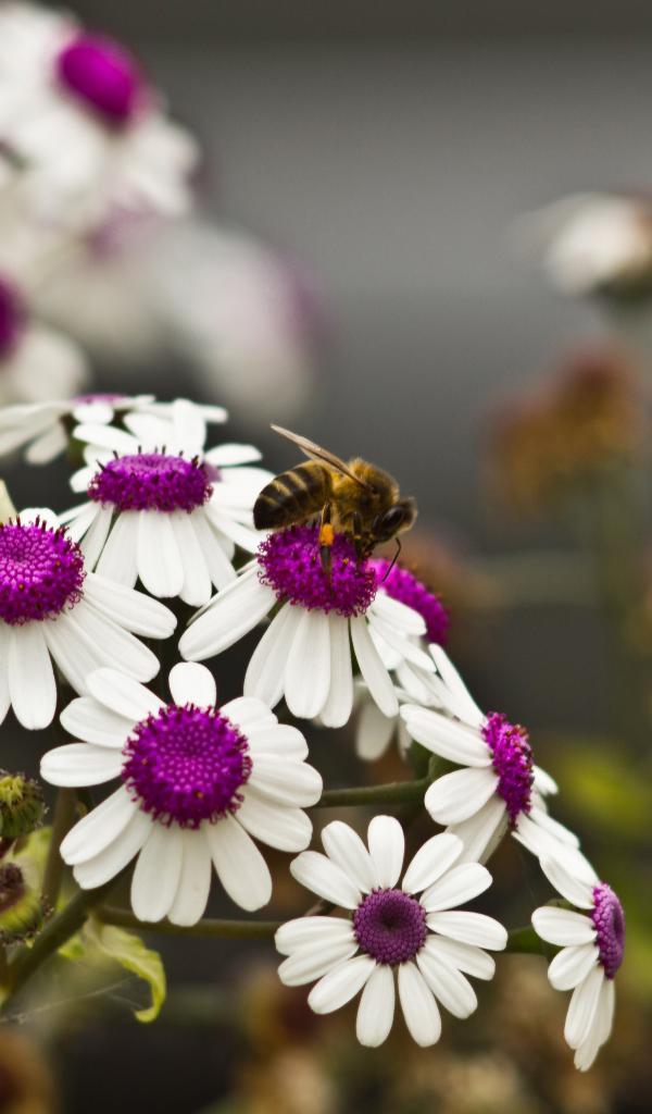 Обои Ромашки с белыми лепестками и сиреневой серединкой