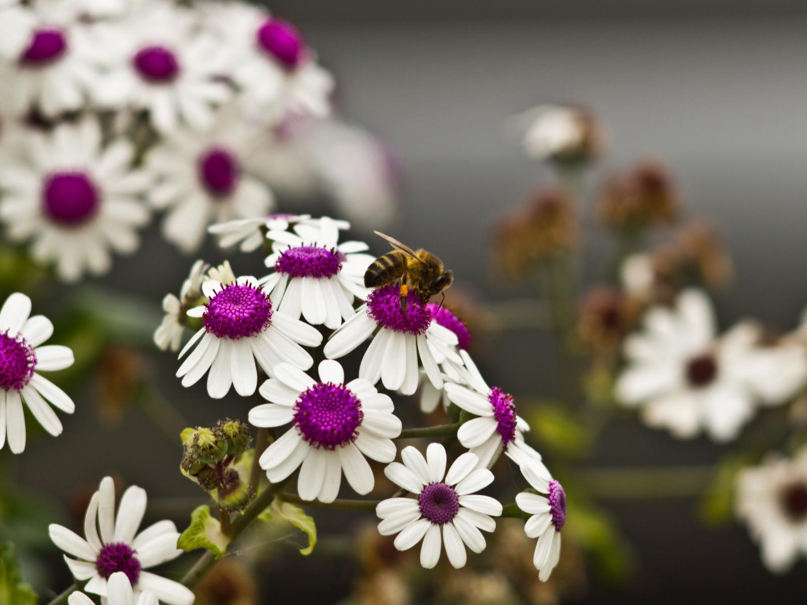 Обои Ромашки с белыми лепестками и сиреневой серединкой