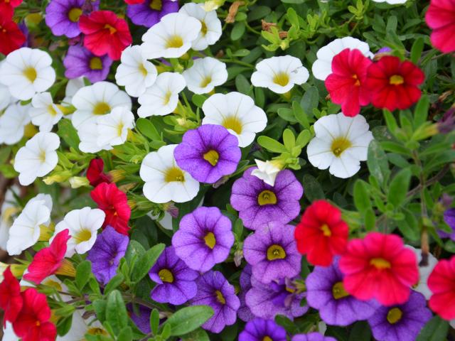 Обои Разноцветные цветы Калибрахоа на клумбе