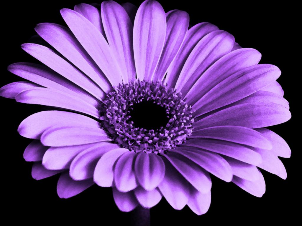 Обои Сиреневая гербера на черном фоне крупным планом