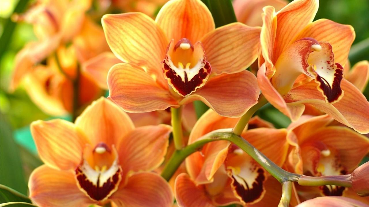 Обои Ветка красивой экзотической оранжевой орхидеи