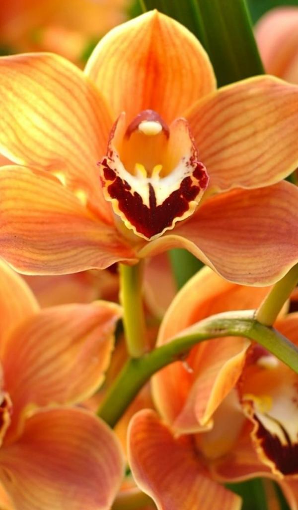 Обои Ветка красивой экзотической оранжевой орхидеи