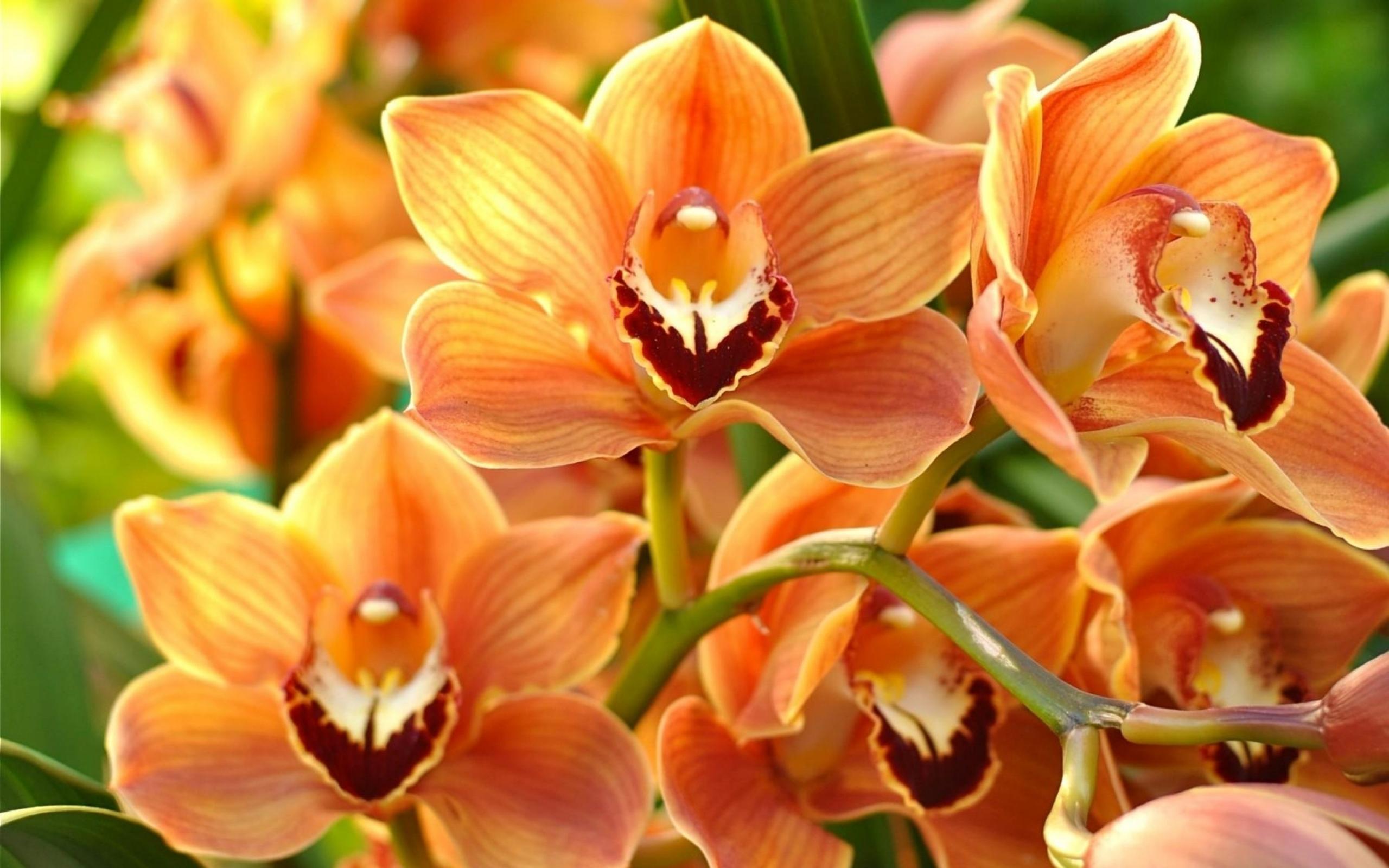 Обои Ветка красивой экзотической оранжевой орхидеи