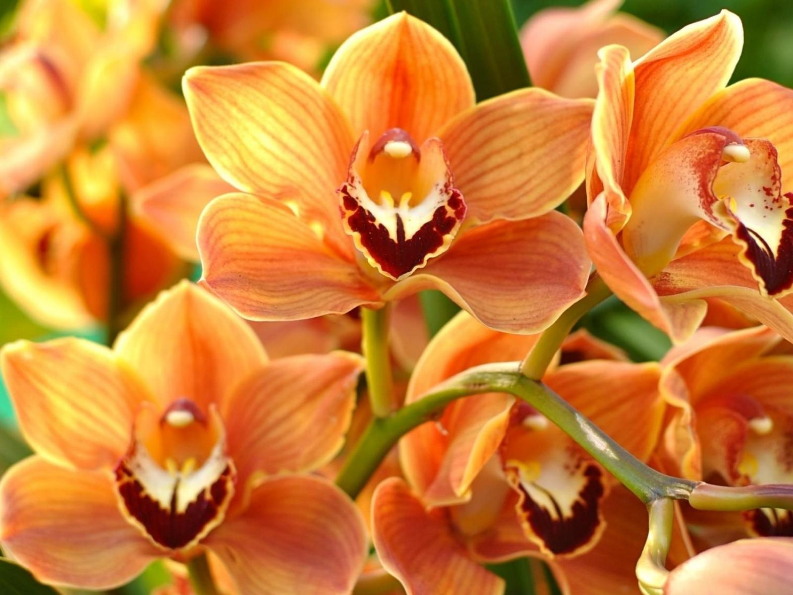 Обои Ветка красивой экзотической оранжевой орхидеи