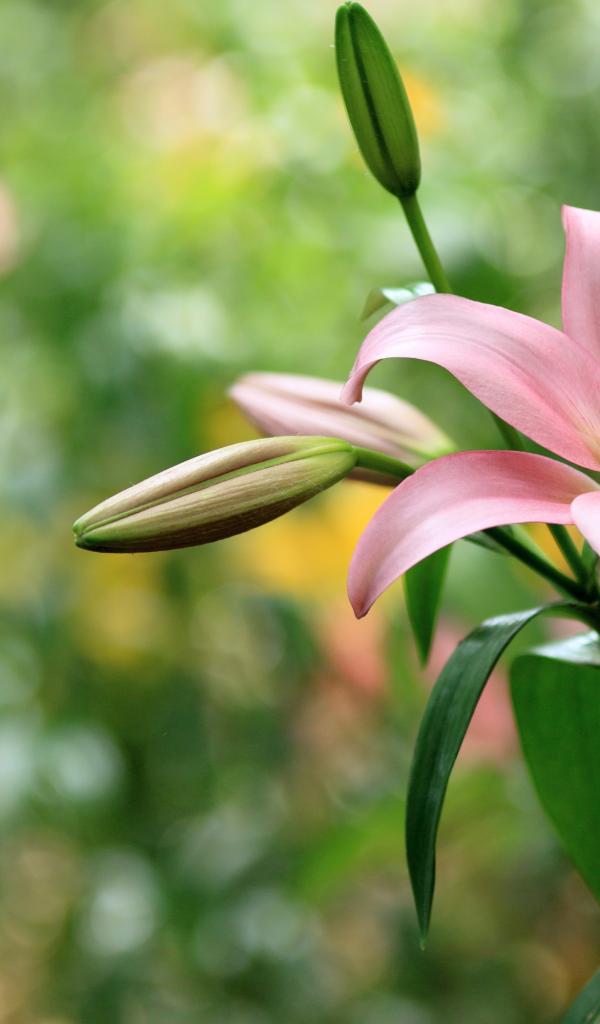 Обои Нежная розовая лилия с бутонами