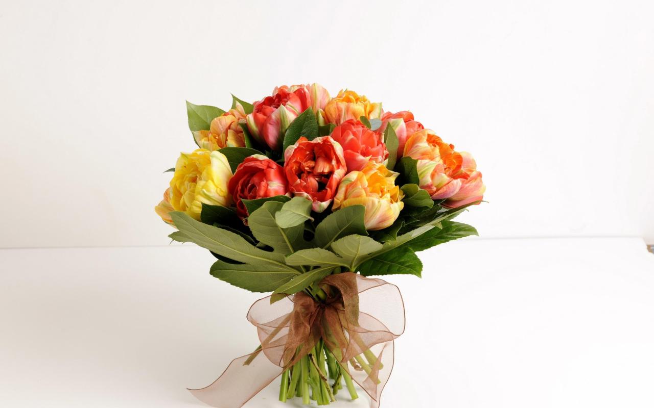 Обои Красивый букет тюльпанов на белом фоне