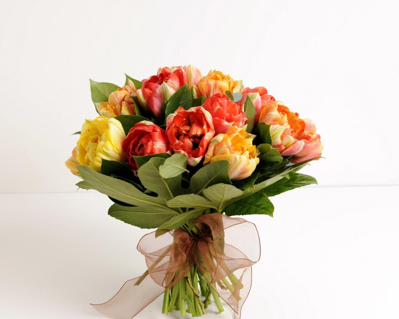 Обои Красивый букет тюльпанов на белом фоне
