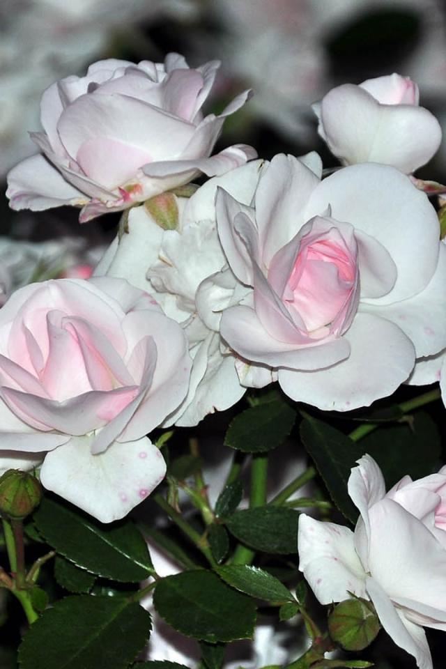 Обои Белые розы с розовыми серединками
