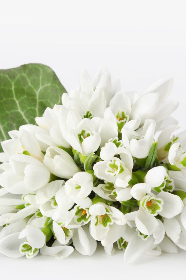 Обои Букет белых подснежников на белом фоне