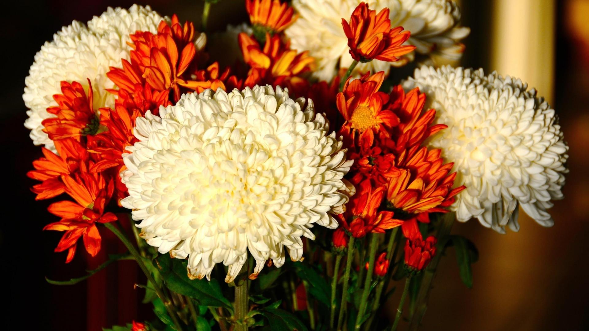 Обои Красивый букет белых и оранжевый хризантем