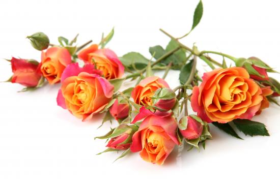 Обои Оранжевые розы с бутонами на белом фоне крупным планом