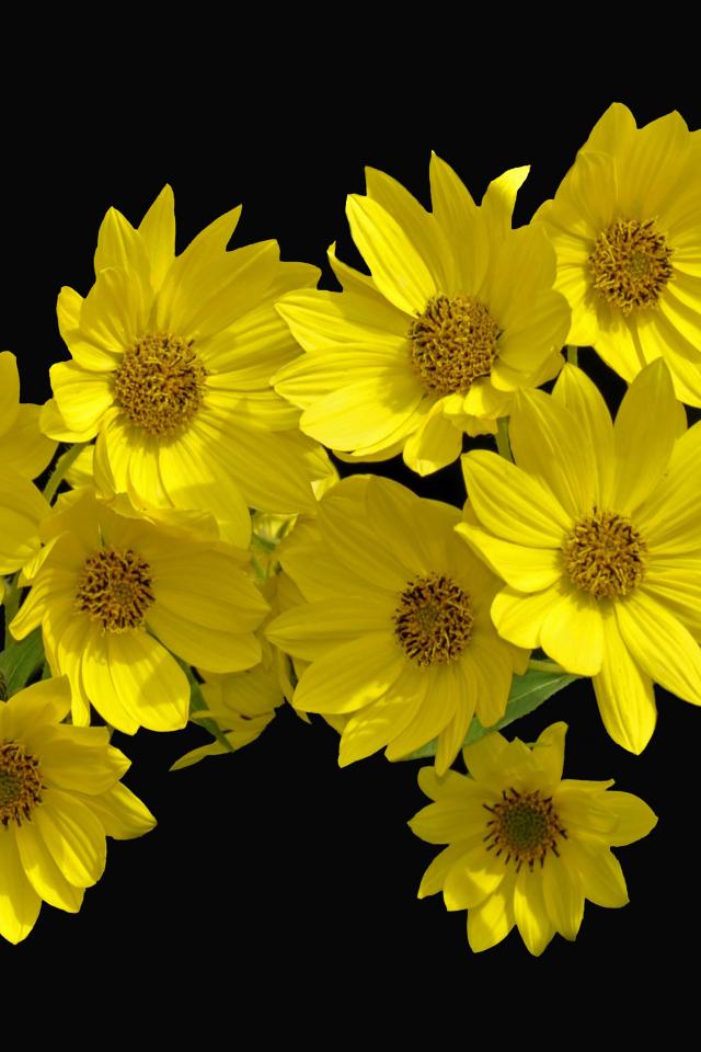 Обои Желтые цветы Гелиопсис на черном фоне