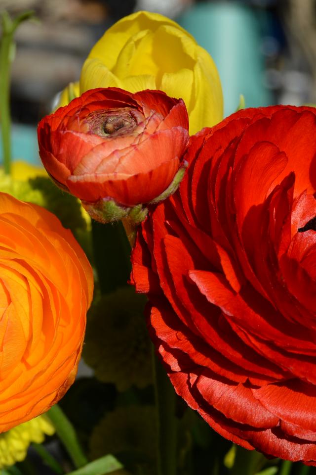 Обои Красивый букет цветы анемоны и лютики