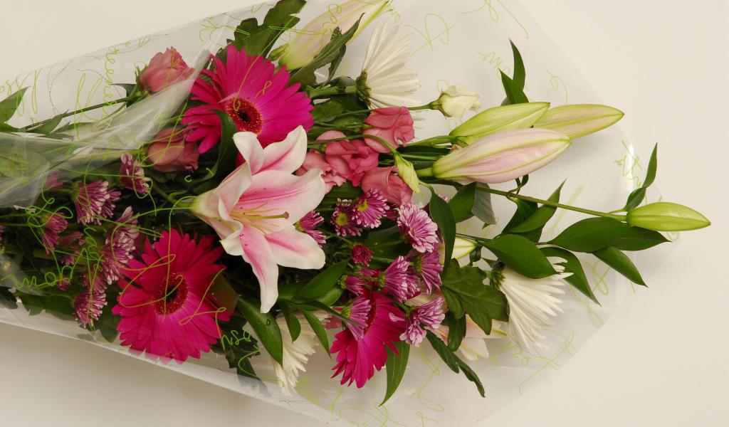 Обои Красивый букет с лилиями, герберами и хризантемами