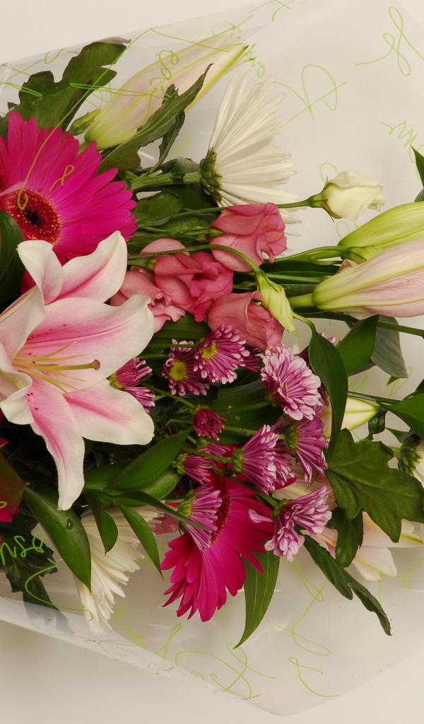 Обои Красивый букет с лилиями, герберами и хризантемами
