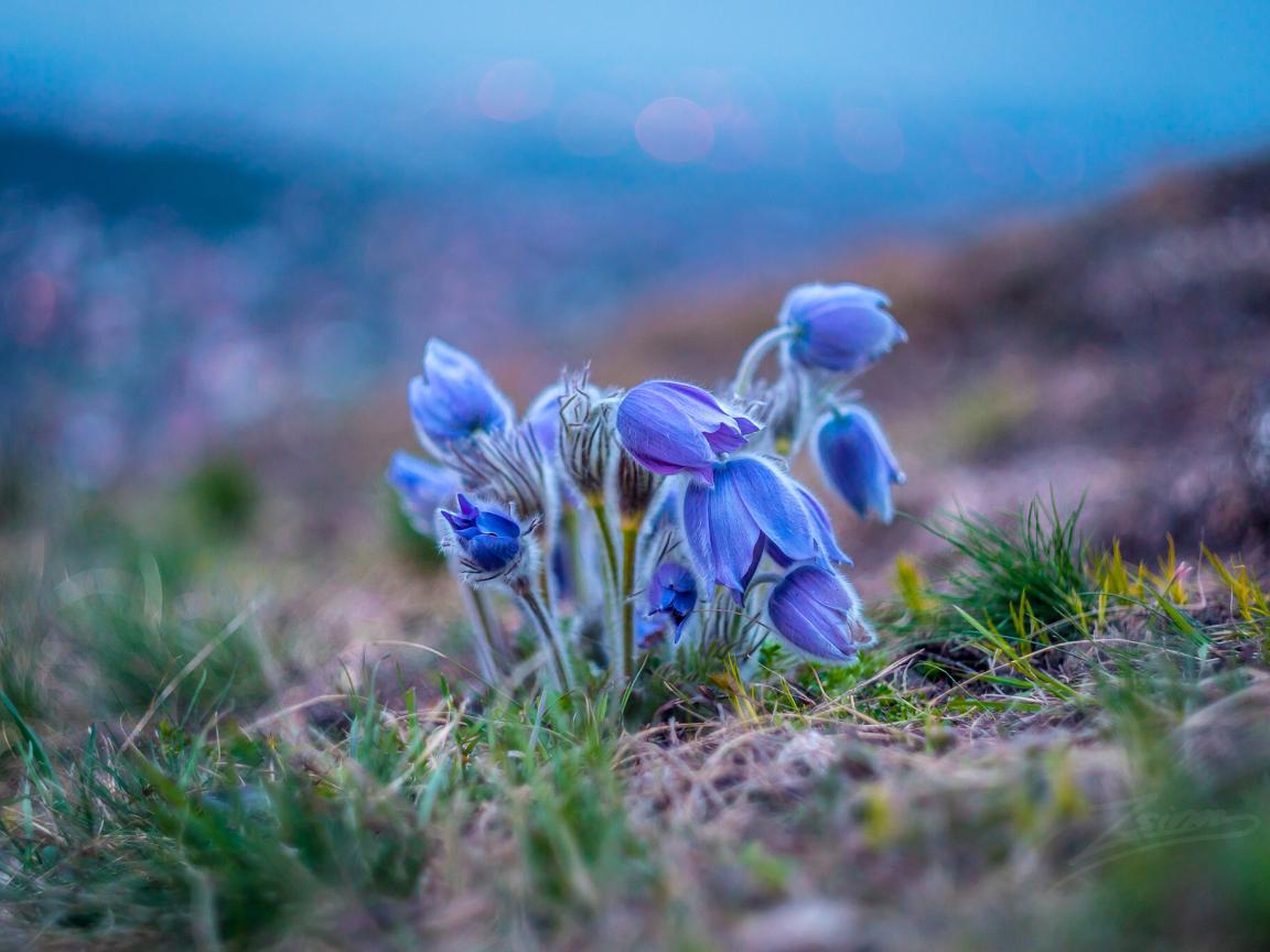 Обои Нежные голубые полевые цветы прострел