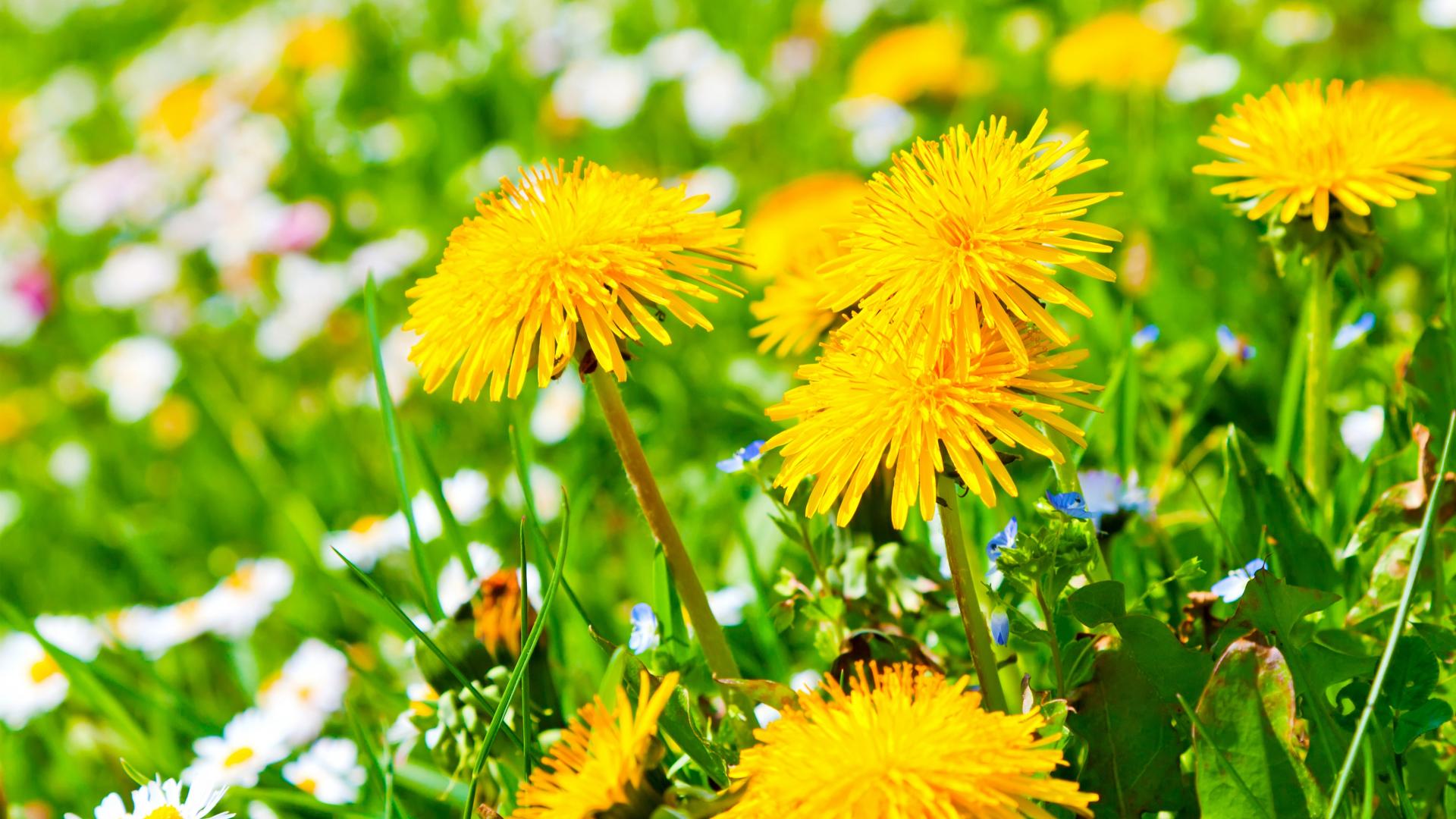 Обои Красивые желтые летние одуванчики с ромашками