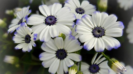 Обои Белые цветы Цинерария с фиолетовой серединкой