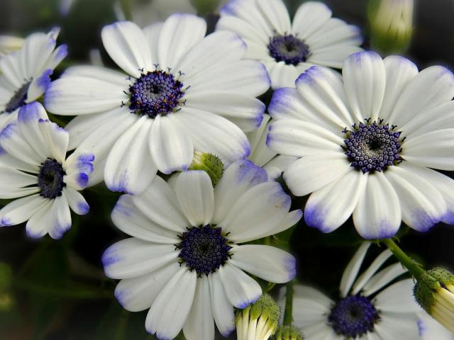 Обои Белые цветы Цинерария с фиолетовой серединкой