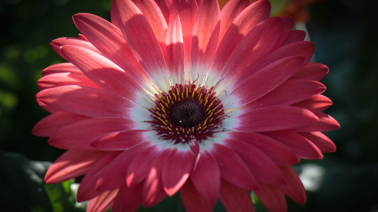 Обои Розовая гербера в солнечном свете крупным планом