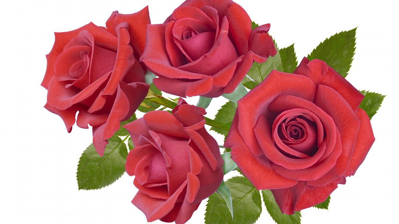 Обои Четыре бордовые розы крупным планом на белом фоне
