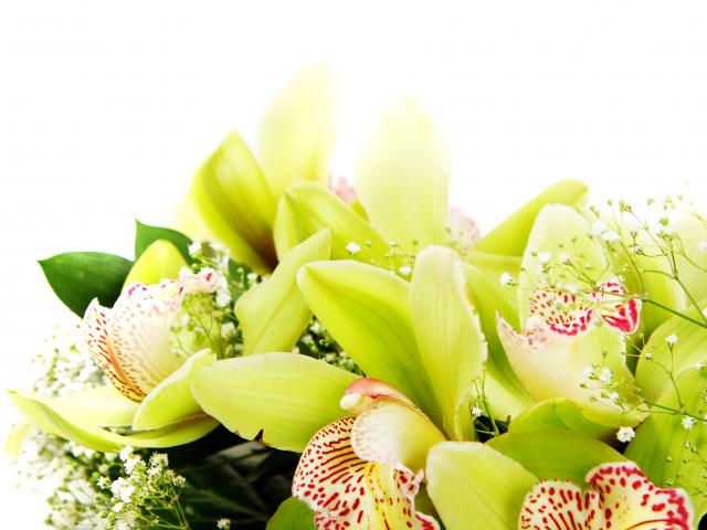 Обои Экзотические цветы орхидеи крупным планом на белом фоне